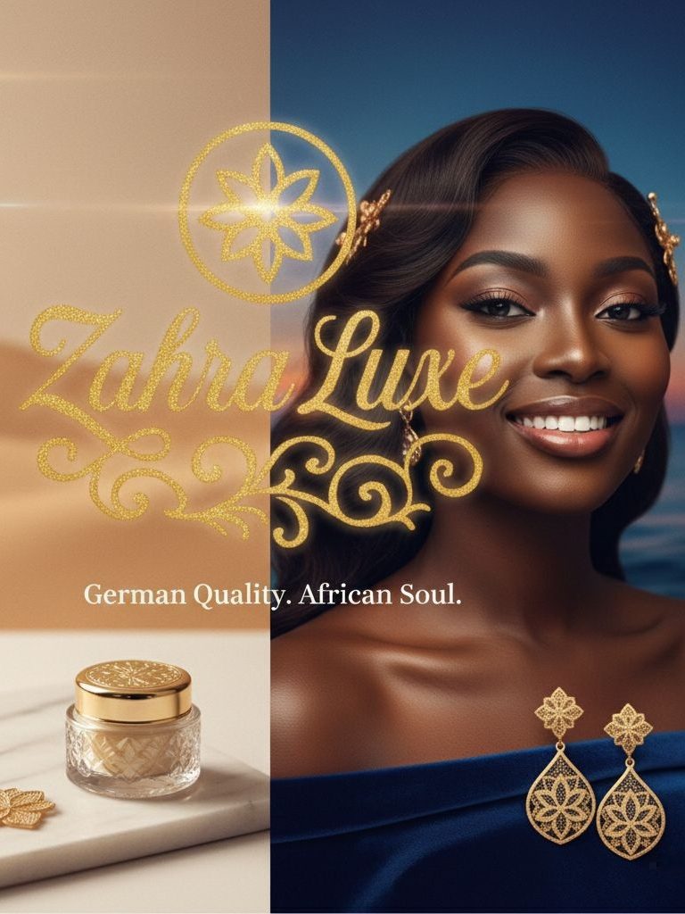 Zahra-Luxe is the luxury brand that unites the best of two worlds. Our fashion jewelry is crafted with German precision and uncompromising quality, while our beauty line (creams & co.) and our design are deeply rooted in the rich culture and vibrant colors of Gambia. We offer authentic, responsible luxury for women who define their radiance – from Europe to Africa.